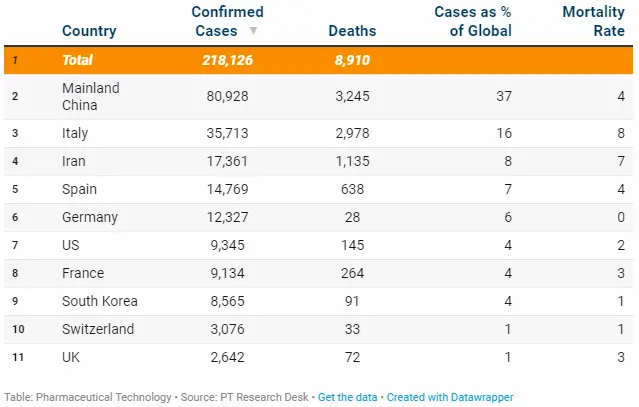 The cases of Corona-virus is now drastically increasing in the world with the latest statistic shows that about 218,126 case of the deathly Corona virus had been report. Almost 8,910 people were reportedly death due to the virus.